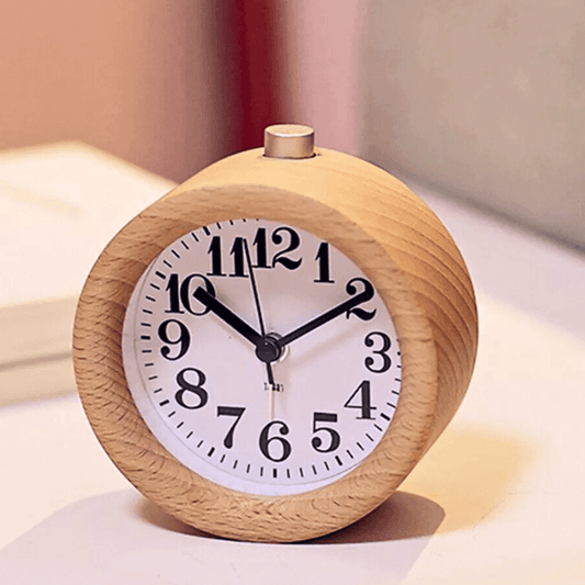 Classic Wooden Alarm Clock - Silent,Battery Powered, Tech Free